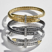 Discover a unique selection of women’s luxury jewelry with a look and feel unlike any other. Every John Hardy piece starts with the finest materials—reclaimed sterling silver, yellow gold, rose gold, diamond, pearls, leather and precious gemstones in a vibrant range of colors. This season, we offer an expanded assortment of necklace, pendant, cuff and ring silhouettes bridging traditional techniques with our modern design ethos. Stackable statement bracelets, sculptural silver rings and everyday stud earrings take center stage.