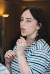 Tokyo pre-show: Billie wears the Carved Chain Cross, Sterling Silver, Diamonds 2mm.