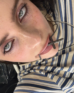 Tokyo pre-show: Billie wears the Carved Chain Cross, Sterling Silver, Diamonds 2mm.
